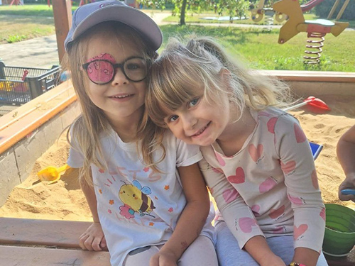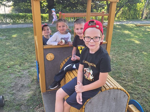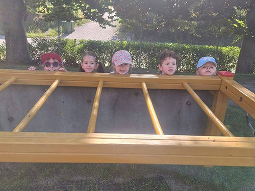 Vedle mateřské školy je krásná, prostorná školní zahrada vybavena pískovištěm s průlezkami a doplněna novými hracími prvky.