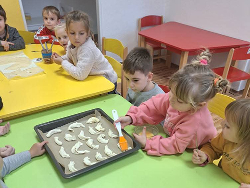 Součástí mateřské školy je školní kuchyň, kde vaříme z čerstvých surovin a biopotravin. Stravování probíhá ve společné jídelně.